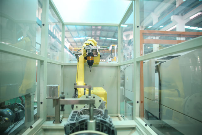 In YIZUMI, there is a  full automatic die casting cell test platform which is Independent of the die casting production workshop, here the die casting machines and the robot is not used to sell but for the testing. At the beginning of the end of 2015, YIZUMI opened up a more than 300 square meters space to build the test platform which is used to test the new design, host performance spare parts, ect. Only for the full automatic die casting cell test platform, YIZUMI have invested around ten million, it is rare to have the scale and advanced test platform in the die casting industry.
