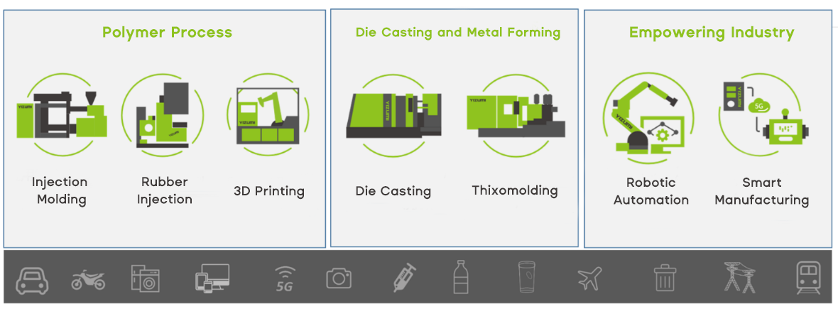 YIZUMI was founded in 2002 and listed successfully on the A-share market in 2015 (Stock Code: 300415). As a benchmark in the field of molding equipment, it establishes several business divisions covering injection molding machines, die casting machines, rubber injection molding machines, high-speed packaging systems, and robotic automation systems, etc.