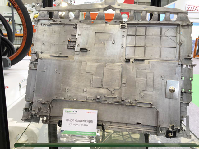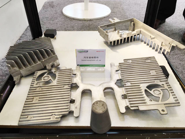 在CHINA DIECASTING上展示的制品便是HPM 650MGⅡ最有力的背書。該產(chǎn)品是富鈦金屬科技(昆山)有限公司使用HPM 650MGⅡ打的汽車功放零件,設(shè)計復雜,最薄的部分接近1.1mm,最厚的則有12mm,厚度相差11倍,而HPM 650MGⅡ不僅能完好地成型該產(chǎn)品,良品率還達到96%以上,這是壓鑄機、甚至是同行的日本機也難以實現(xiàn)。