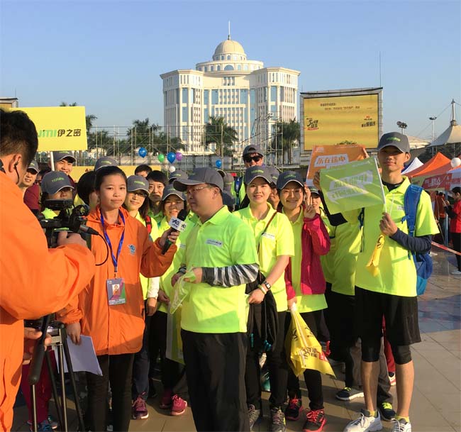 伊之密作為全程支持單位,由工會(huì)下設(shè)的樂在途中俱樂部組織了近80人的隊(duì)伍,共同參與這一徒步盛事,傳播健康生活的理念。在起點(diǎn)處,伊哥們統(tǒng)一的服裝、整齊的方陣成為了一道靚麗的風(fēng)景線,總裁助理曾繼華先生接受佛山電視臺的直播采訪,并為勇士們加油打氣。