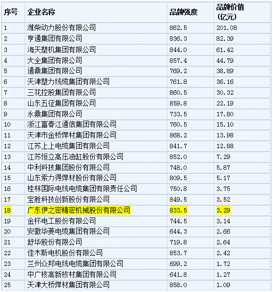 2015中國品牌價(jià)值榜:伊之密榮耀上榜!