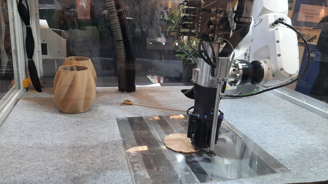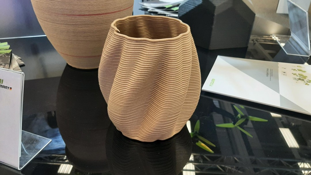 展會上,德國伊之密展出款式多樣的3D打印制品,還展示了SpaceA工業(yè)3D打印機領(lǐng)域的創(chuàng)新成果。一臺小型的SpaceA-900E-500-S在現(xiàn)場打印花瓶制品,引來各方關(guān)注尖端科技的人群目光。
