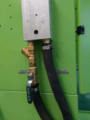 A、關閉注射/塑化/噴嘴體冷卻水的進出水閥門,拆下進出水管,如果環(huán)境溫度低于零度,需用風槍將冷卻器內(nèi)部的殘留水份全部吹出來(此時需要保證控水電磁閥得電),避免冷卻器內(nèi)部水結(jié)冰導致冷卻器損壞,或者出現(xiàn)生銹或氧化。