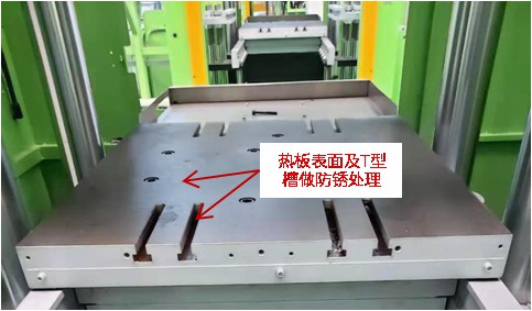 ※ 橡膠機在停機前,應將模具的上模板放下,保證模具上下模板是在合模狀態(tài),以達到對模腔進行保護,同時需要開模到底,保證鎖模柱塞在主油缸內(nèi),對柱塞表面起防銹作用,更好地保護模具和鎖模機構;※ 開模后,對上下熱板表面及T槽進行清潔及加防銹油進行防護處理。