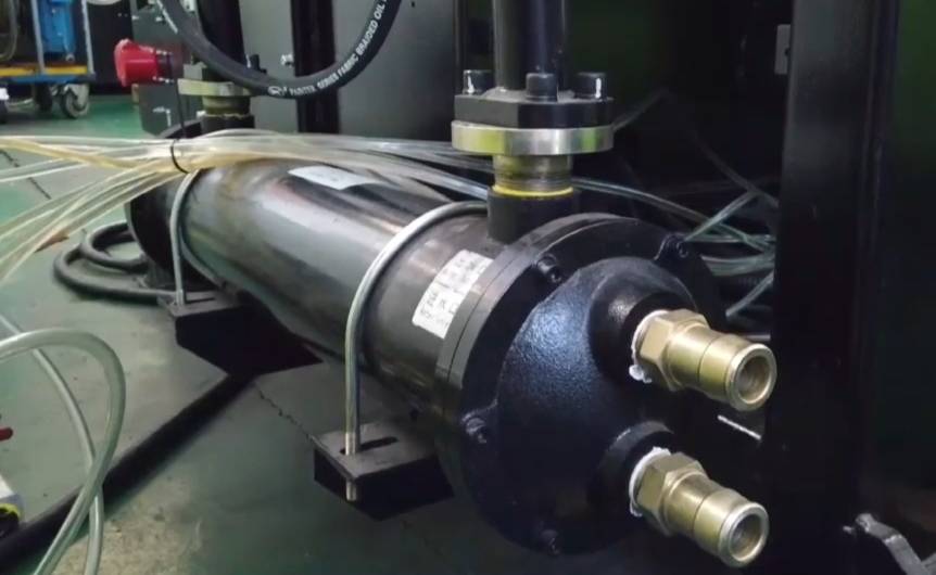 ◆關閉注塑機液壓油冷卻器的進出水閥門,拆下進出水管,用空壓機的風槍將冷卻器內(nèi)部的殘留水分全部吹出來(排泄出來),避免冷卻器內(nèi)部生銹或氧化。
