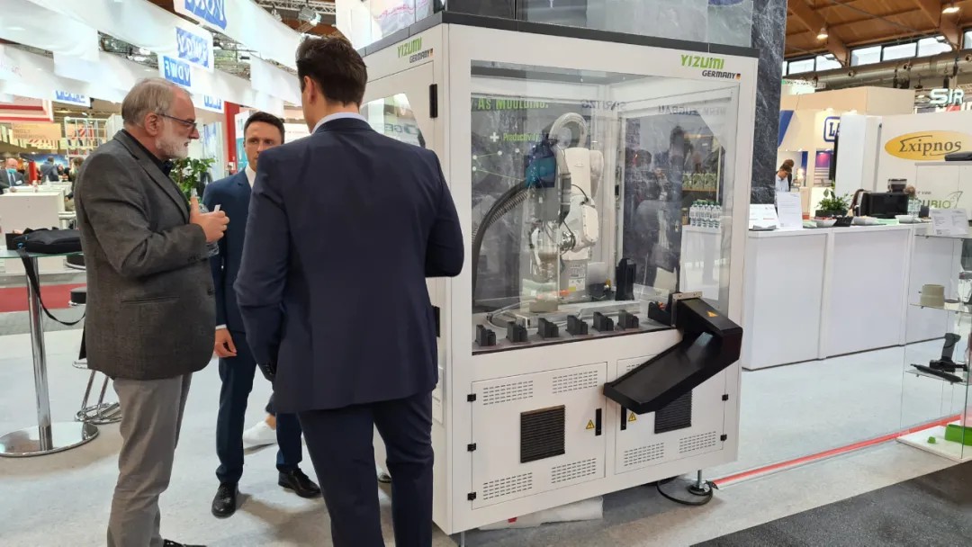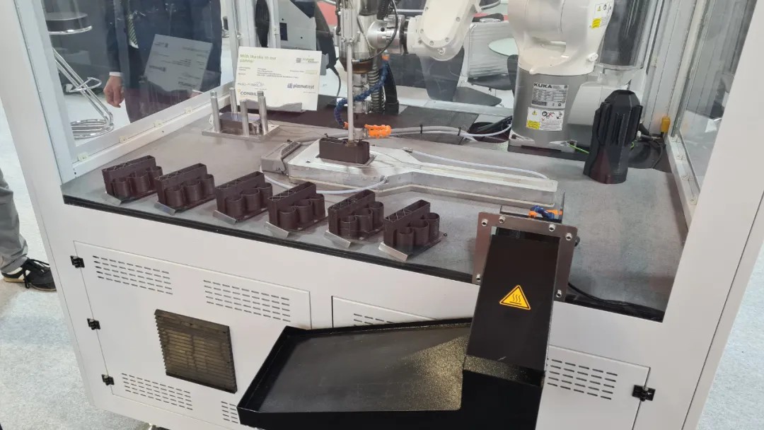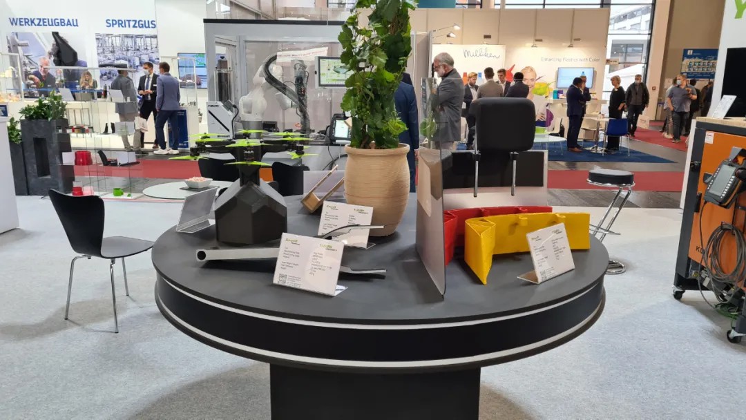 另外,SpaceA-900E-500-S展示方面,現(xiàn)場(chǎng)每10分鐘就能成型一個(gè)筆架。制品是在有特殊涂層的金屬件上,打印碳纖維增強(qiáng)尼龍材料(PA6+CF)。這是德國(guó)伊之密首次展示在SpaceA 工業(yè)3D印機(jī)上成功生產(chǎn)金屬-塑料復(fù)合件,為未來的金屬零件加工,提供了獲取更高成本效益和靈活性的可能性。德國(guó)伊之密工程師向客商們介紹在增材制造領(lǐng)域的工程服務(wù)。