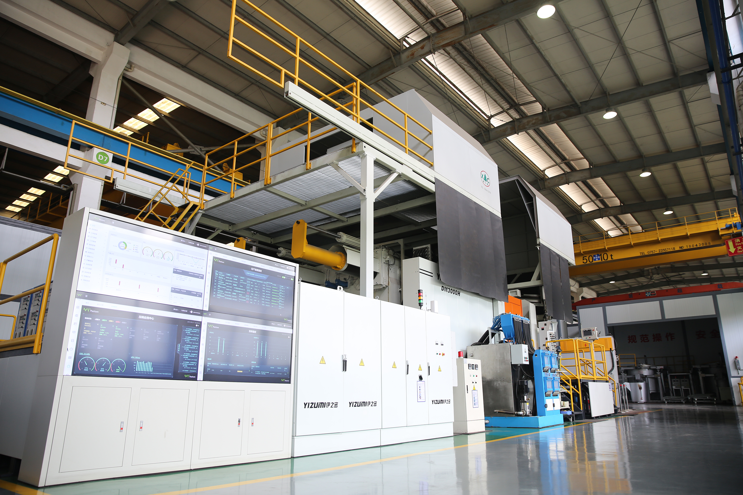 目前,一期規(guī)劃建設(shè)3000T自動(dòng)化壓鑄島,包括主機(jī)單元,熔煉單元、模溫機(jī)、點(diǎn)冷機(jī)等周邊輔助設(shè)備,以及取件、噴涂機(jī)器人自動(dòng)化單元。同時(shí),引進(jìn)了三坐標(biāo)、光譜儀、x光等檢測(cè)設(shè)備。整套壓鑄島單元還搭載了伊之密自主研發(fā)的Yi MES(智造執(zhí)行系統(tǒng)),實(shí)時(shí)監(jiān)控整個(gè)單元的工藝參數(shù)和生產(chǎn)狀況。
