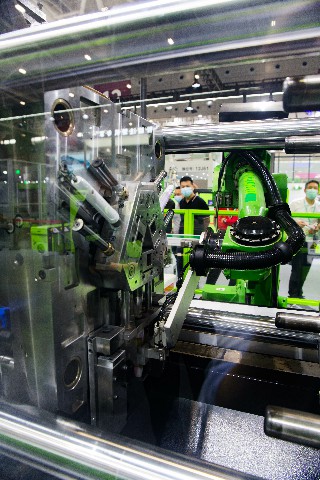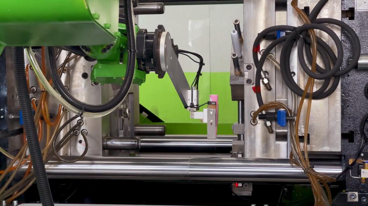 在2021年雅式展,伊之密NSW馱式機(jī)展示三色電動(dòng)牙刷柄——配合三色模具,UN220C-NSW搭載V型電動(dòng)射臺(tái),一步生產(chǎn)集PC本體、TPE按鍵軟膠、ABS透明指示燈外殼于一身的三色電動(dòng)牙刷柄,并有激光打印,實(shí)現(xiàn)產(chǎn)品工藝追蹤。