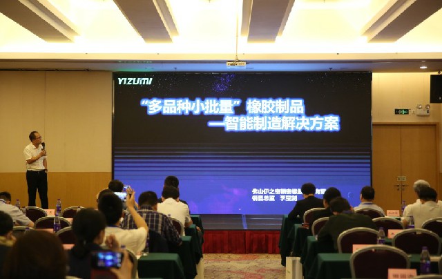 在技術(shù)發(fā)展論壇上,專家們就有關(guān)橡膠制品行業(yè)發(fā)展趨勢(shì)、行業(yè)應(yīng)用等話題展開了積極的交流。伊之密銷售總監(jiān)李寶劍現(xiàn)場(chǎng)做了《多品種小批量橡膠制品的智能制造解決方案》主題演講。