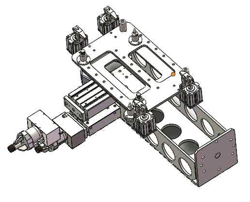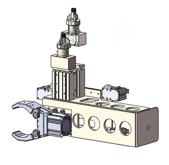 如何將料柄手、鑲嵌手、制品手集成在一臺機器人上并且互不干涉,對方案的的后續(xù)工作起著至關重要的作用。
