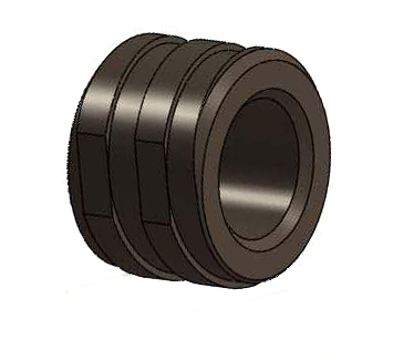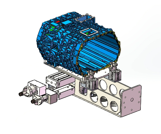 針對其復雜的工藝,伊之密技術團隊在取件鑲嵌手上下了極大的功夫,專為客戶設計了三種機械手。采用氣缸驅動夾持結構,實現(xiàn)對圓柱形料柄的夾持,夾持直徑范圍達130-200mm,夾持力最大可到600KN,并帶有結構自鎖功能,滿足夾持重型鑄件的需求;重卡鑲嵌件外形為小型圓環(huán),鑲嵌機械手采用三爪氣缸抓取內圓,并帶有頂出功能,可同時抓取兩個鑲嵌件,分別鑲嵌于動模和定模,為鑲嵌動作的完成提供了高效的解決方案;產品流道及料柄去除后,通過先對產品進行定位支撐,再用四個夾爪氣缸進行加緊固定,便捷地實現(xiàn)產品的夾持與搬運。