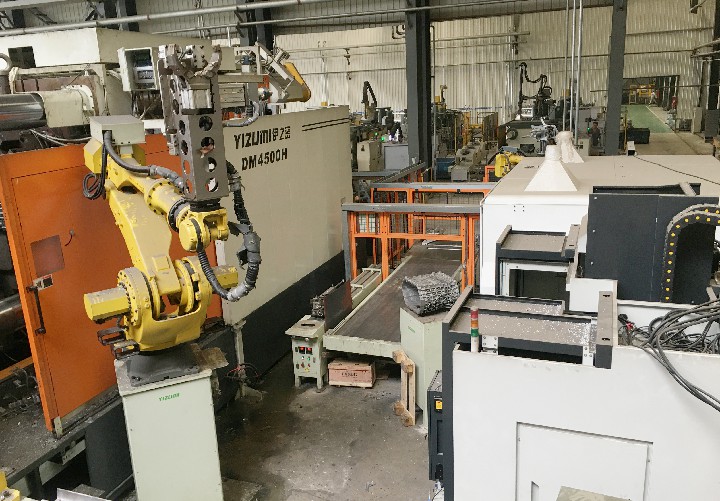 自去年長春力嘉引進伊之密4500噸自動化壓鑄島,伊之密4500T重型壓鑄機和機器人自動化已相繼完成所有機器出機,并在今年3月順利投產,生產重型卡車變速箱殼體。這是力嘉集團引進1250T、3000T等多套伊之密設備后,至今配置的最大噸位壓鑄島。