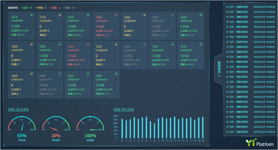 另外,無(wú)論是從電腦PC端還是手機(jī)端,管理者都可以隨時(shí)查看設(shè)備生產(chǎn)狀態(tài)、產(chǎn)能、良率等數(shù)據(jù)統(tǒng)計(jì)分析,通過(guò)及時(shí)化、透明化、數(shù)據(jù)化的報(bào)表實(shí)現(xiàn)對(duì)車間的管理。