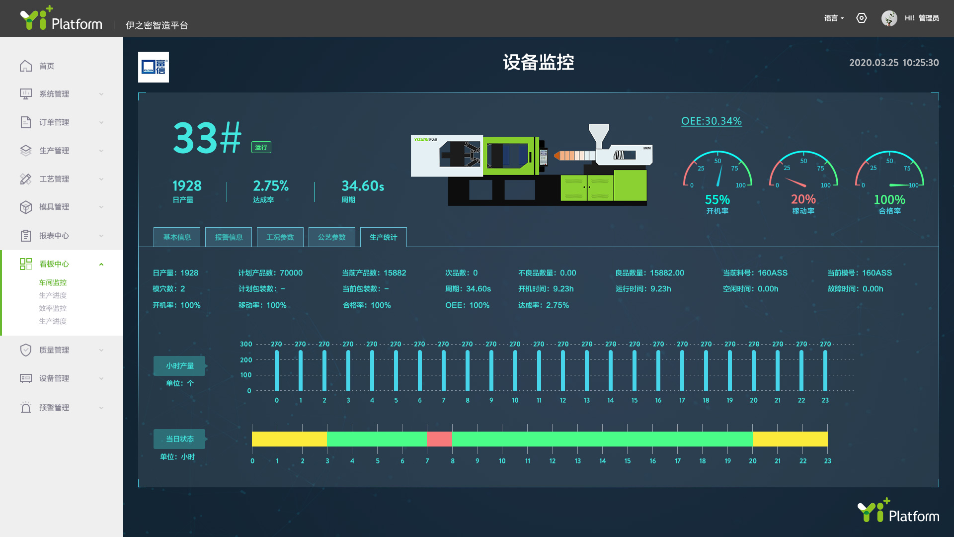 當(dāng)年李嘉誠(chéng)靠蹲機(jī)器監(jiān)督生產(chǎn)工藝、管質(zhì)量,互聯(lián)網(wǎng)時(shí)代的今天應(yīng)該怎么做呢?伊之密YiMES智能制造執(zhí)行系統(tǒng)可解決。牛建文介紹說(shuō):“通過(guò)連網(wǎng)主機(jī)設(shè)備,YiMES對(duì)生產(chǎn)全流程管控,實(shí)現(xiàn)產(chǎn)前有標(biāo)準(zhǔn),產(chǎn)中有控制,產(chǎn)后有追溯,保證不生產(chǎn)不良品、不流出不良品?!?/p>