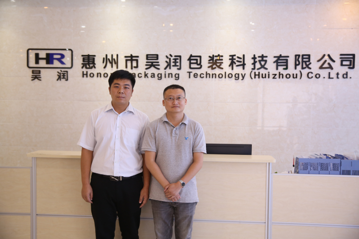 惠州市昊潤(rùn)包裝科技有限公司總經(jīng)理 林虎(右一),生產(chǎn)總監(jiān)張金水