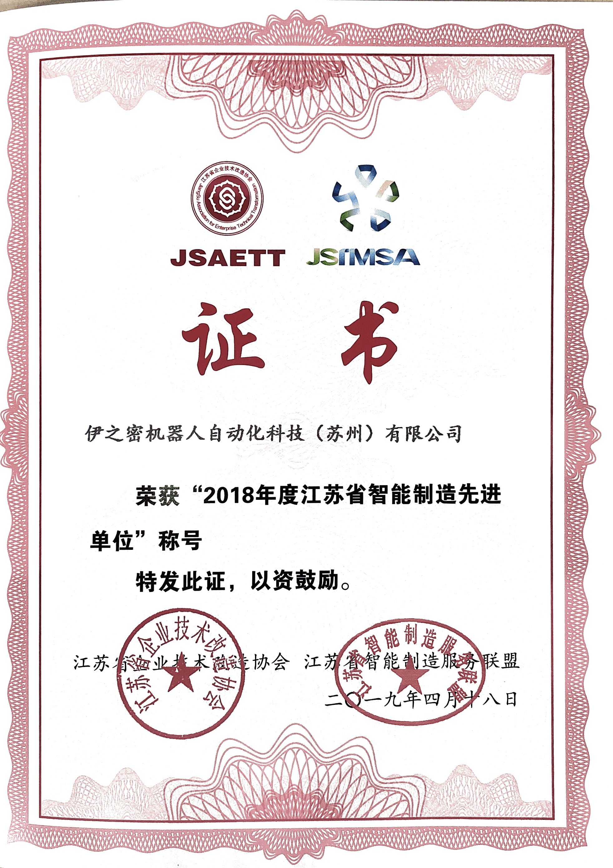 繼獲得2018年江蘇省智能制造先進(jìn)單位認(rèn)定之后,伊之密機(jī)器人自動(dòng)化科技(蘇州)有限公司又榮獲2018年度壓鑄行業(yè)國產(chǎn)自動(dòng)化集成商杰出品牌冠軍。