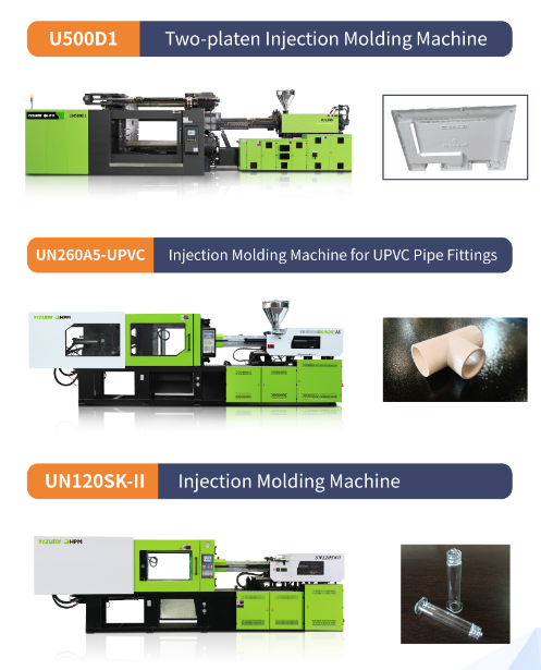 伊之密參展的三款機型都配備了模具和輔機系統(tǒng),將在現(xiàn)場生產塑料制品。其中,UN500D1 二板式注塑機將現(xiàn)場生產顯示器后蓋,UN120SKII 通用注塑機生產針筒而UN260A5-UPVC管件專用注塑機生產UPVC管件。