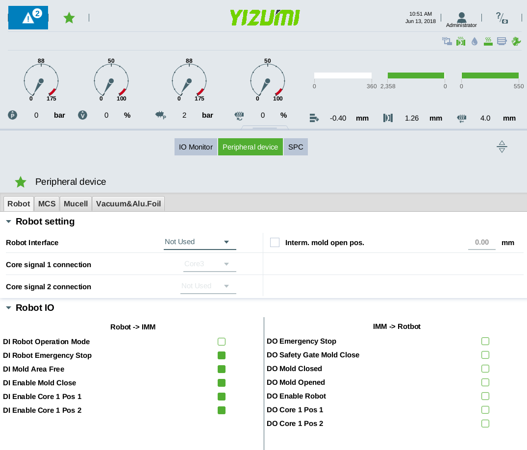 對(duì)于自動(dòng)化系統(tǒng),重點(diǎn)是各個(gè)工序的先后次序與銜接配合,比如塑化、打氣、鋁箔沖切轉(zhuǎn)移、抽真空、合模、注射、取件。如圖9所示,伊之密注塑機(jī)將動(dòng)作控制全部整合到操作系統(tǒng)中,使整個(gè)流程更緊湊,工藝參數(shù)設(shè)置更高效。