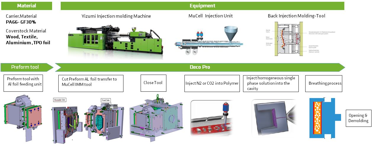 圖1 汽車發(fā)動(dòng)機(jī)蓋FoamPro+DecoPro(微發(fā)泡+模內(nèi)裝飾)解決方案