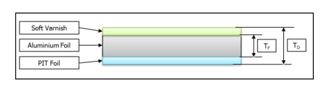 本案例所用裝飾鋁箔由德國(guó)Lyondellbasell公司提供。如圖3所示,裝飾鋁箔由柔性表層、鋁質(zhì)中間層和PIT(塑料界面技術(shù))層組成。PIT層是裝飾箔和塑料基體之間必需的粘結(jié)層,而柔性表層使模內(nèi)刻紋成為可能。鋁箔裝飾層不僅賦予發(fā)動(dòng)機(jī)蓋良好的金屬光澤,還提高制品耐久度,一定程度阻隔發(fā)動(dòng)機(jī)噪音。