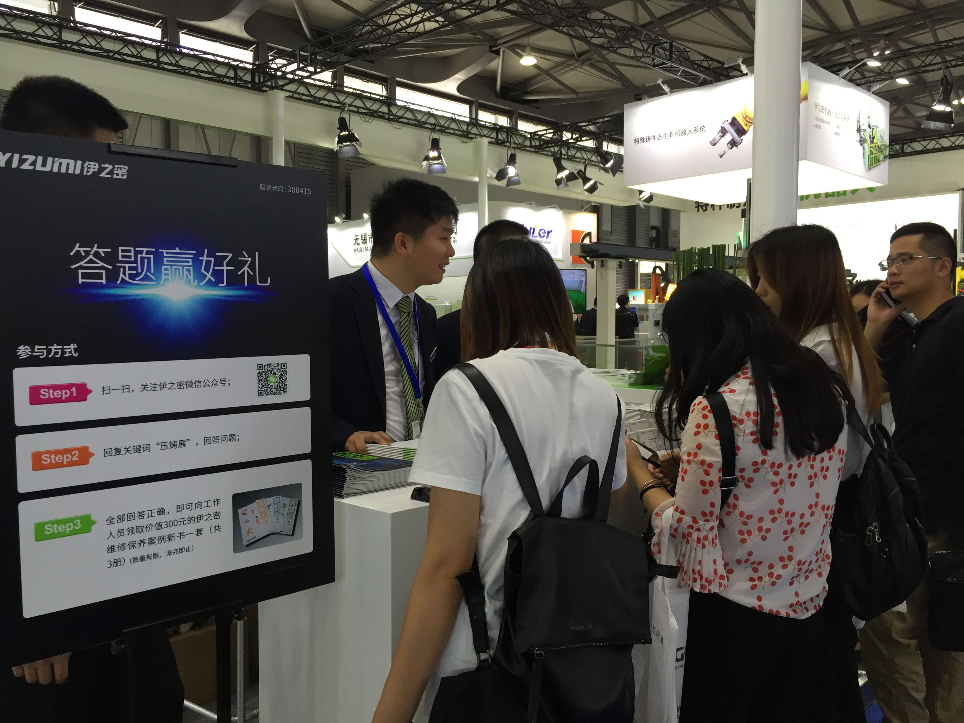 伊之密展臺從上午10點開始,全天十個時段,呈獻五大先進金屬成型技術(shù)主題演講。一眾伊之密資深的技術(shù)專家在展會現(xiàn)場分享、探討金屬先進成型技術(shù)的經(jīng)驗與趨勢?,F(xiàn)場還會送出“科技大禮包”,客商拿起手機,“掃一掃”關(guān)注伊之密公眾號,答對問題,免費領(lǐng)取一套由伊之密技術(shù)團隊打造的壓鑄機保養(yǎng)維修技術(shù)寶典——《鑄就-案例特刊》。