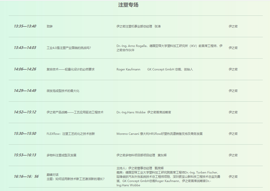 注塑活動議程