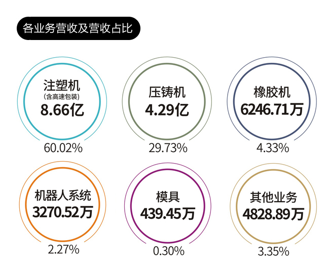 在裝備領域的多元化發(fā)展,伊之密形成了注塑機、壓鑄機、橡膠機、高速包裝系統(tǒng)、機器人自動化、伊明模具等多個業(yè)務,其中注塑機業(yè)務(含高速包裝)在2016年憑借A5系列新一代伺服節(jié)能注塑機、DP系列大型二板式注塑機全面導入,營收達到8.66億,同比增長32.49%。