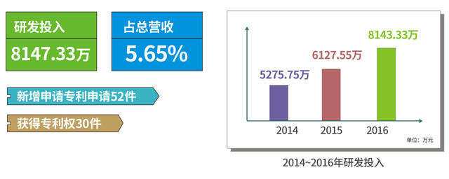 多年來,伊之密一直重視研發(fā)投入,以產(chǎn)品實力驅(qū)動未來的增長。2016年繼續(xù)增加研發(fā)投入,促進產(chǎn)品更新迭代,2016年研發(fā)費用支出為8,147.33萬元,占比營業(yè)收入的5.65%,新增專利申請52件,獲得專利權30件,其中發(fā)明專利權1件。未來,伊之密還將持續(xù)加強研發(fā)投入,聚焦工藝應用,成立德國研發(fā)中心,連接歐洲先進成型技術,成為裝備制造領域世界級企業(yè)。