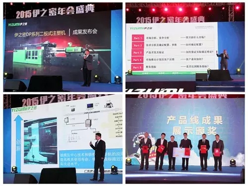 下午的節(jié)目其中一個亮點是“產(chǎn)品線上的伊之密”環(huán)節(jié)。播放《創(chuàng)新,伊時代》視頻后,注塑機、壓鑄機、橡膠機、高速包裝系統(tǒng)、機器人自動化項目5大產(chǎn)品線在臺上分別展示了過去一年產(chǎn)品線項目的成果,臺下現(xiàn)場評獎。