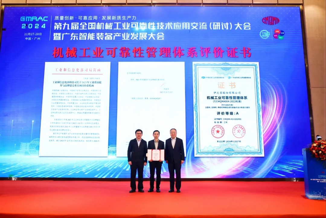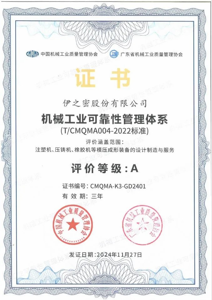 伊之密獲可靠性管理體系證書(A級(jí)),是行業(yè)內(nèi)首獲此殊榮企業(yè)