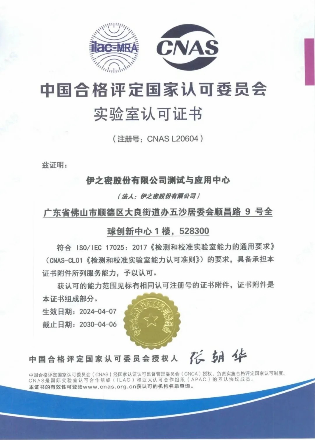 伊之密測(cè)試與應(yīng)用中心順利通過CNAS認(rèn)可