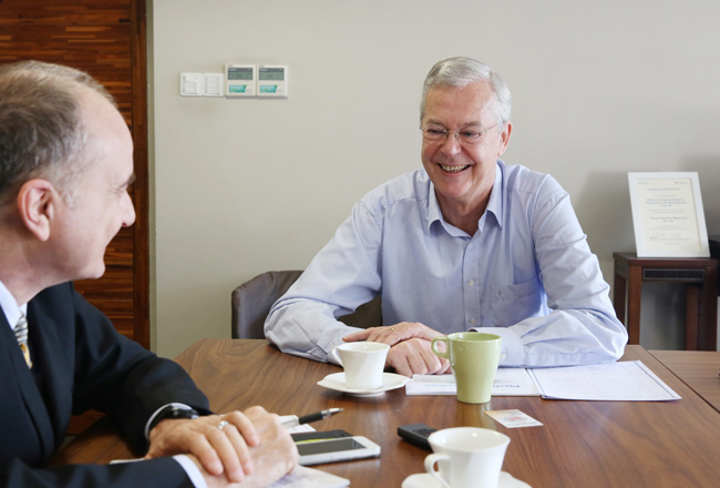 Dr. Hans Wobbe(右)接受《塑料新聞中國》記者Kent Miller采訪
