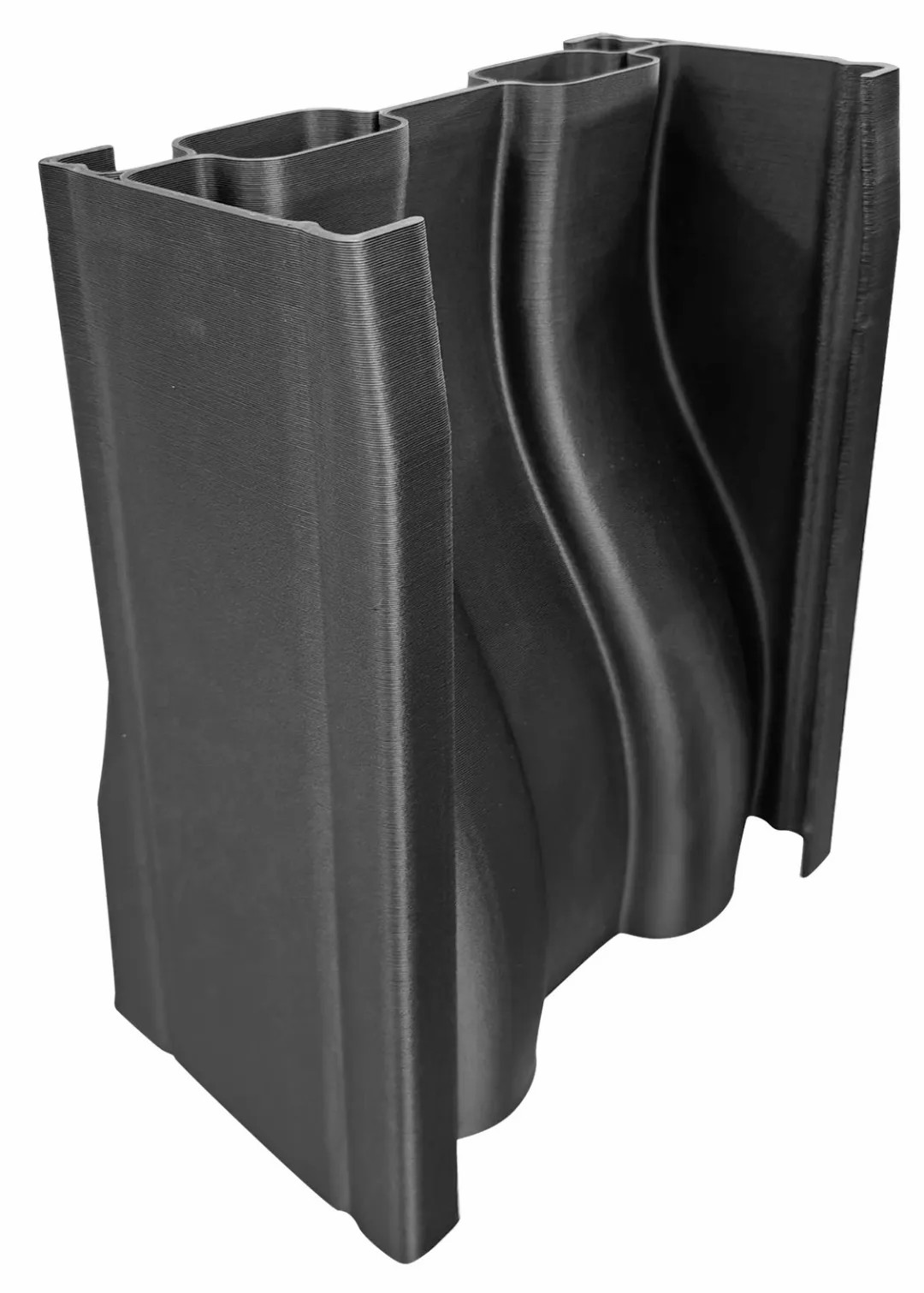 值得一提的是,對于如此復雜的結(jié)構(gòu),注塑成型和模壓成型都存在較大的挑戰(zhàn)。而伊之密團隊通過優(yōu)化SpaceA的打印工藝參數(shù),不僅實現(xiàn)了年產(chǎn)量18000件的小批量需求,而且降低了零件重量,節(jié)約了材料成本。