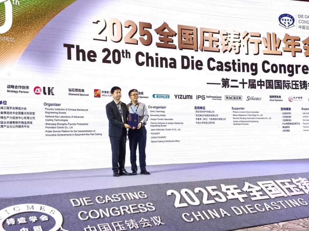 3月26至28日,由中國機(jī)械工程學(xué)會、世界鑄造組織(WFO)壓鑄委員會、鑄造行業(yè)生產(chǎn)力促進(jìn)中心、中國機(jī)械科學(xué)研究總院集團(tuán)有限公司主辦,中國機(jī)械工程學(xué)會鑄造分會、高端裝備鑄造技術(shù)全國重點(diǎn)實(shí)驗(yàn)室、沈陽中鑄生產(chǎn)力促進(jìn)中心有限公司、裝備制造業(yè)關(guān)鍵零部件鑄造領(lǐng)域創(chuàng)新成果產(chǎn)業(yè)化公共服務(wù)平臺承辦的2025年全國壓鑄行業(yè)年會暨第二十屆中國國際壓鑄會議在南京召開。