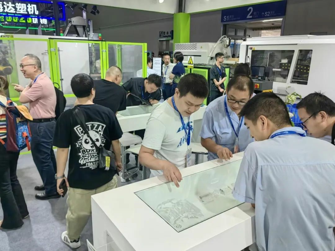 現場看到,伊之密帶來的是雙色汽車光學件成型方案、汽車側門IMC面板成型方案、微量保存管成型方案和Yi+Platform伊之密智造平臺,吸引各方客商駐足咨詢。