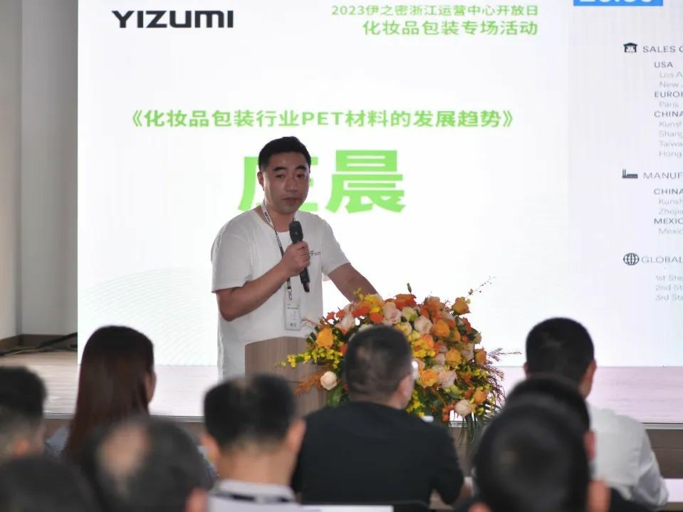 洽興集團(tuán)開發(fā)部莊晨帶來《化妝品包裝行業(yè)PET材料的發(fā)展趨勢(shì)》的主題演講