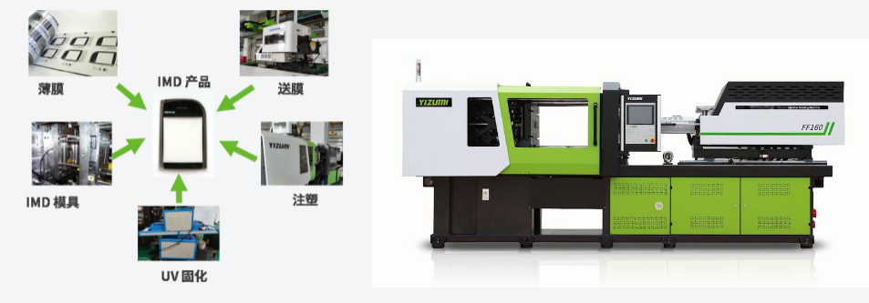 伊之密IMDPro模內(nèi)裝飾成型方案配置FF系列電動(dòng)注塑機(jī),結(jié)合二次合模技術(shù),實(shí)現(xiàn)更高良率和效率的IMD產(chǎn)品制備,并搭載自動(dòng)化設(shè)備,滿足全過程自動(dòng)化生產(chǎn)需求。