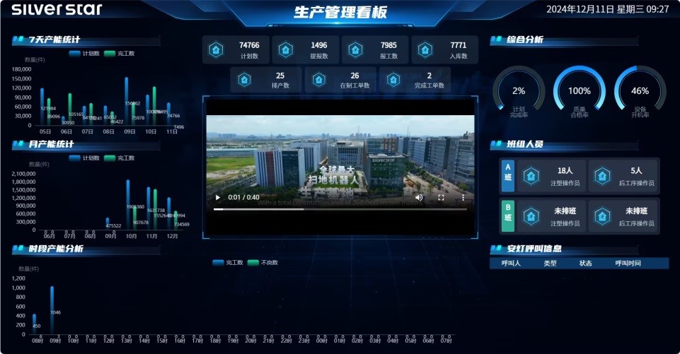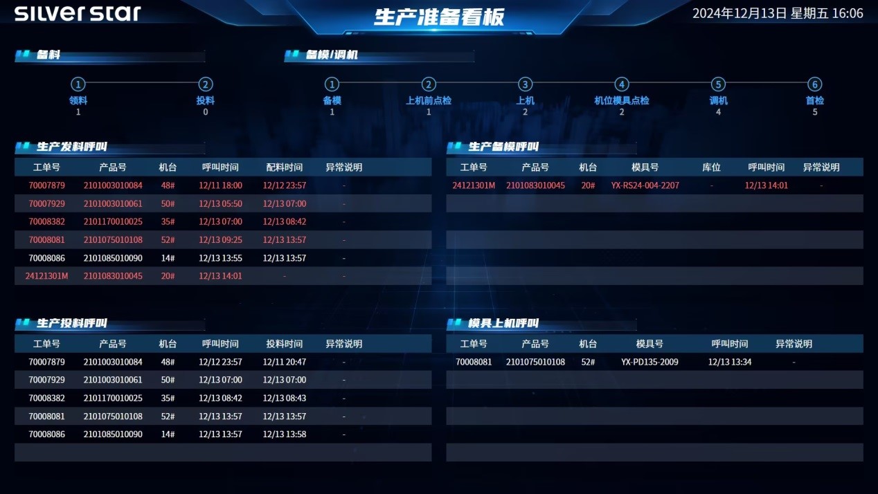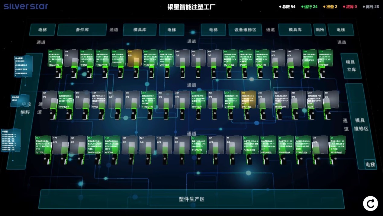 2024年10月銀星智造完成了Yi-MES系統(tǒng)的全面上線,實現(xiàn)工廠從計劃任務(wù)下發(fā)到注塑產(chǎn)品完工質(zhì)檢入庫的生產(chǎn)全流程標(biāo)準(zhǔn)化、數(shù)據(jù)透明化管理。通過數(shù)字化系統(tǒng)完成了產(chǎn)品制程全面追溯與防錯,生產(chǎn)過程完成全方位記錄,為企業(yè)決策提供全面的數(shù)據(jù)支撐。工廠生產(chǎn)管理完成無紙化,拋棄傳統(tǒng)的線下溝通方式,打破設(shè)備、模具、原料等資源信息孤島,全過程信息互通,構(gòu)建了統(tǒng)一化、數(shù)字化的管理平臺。