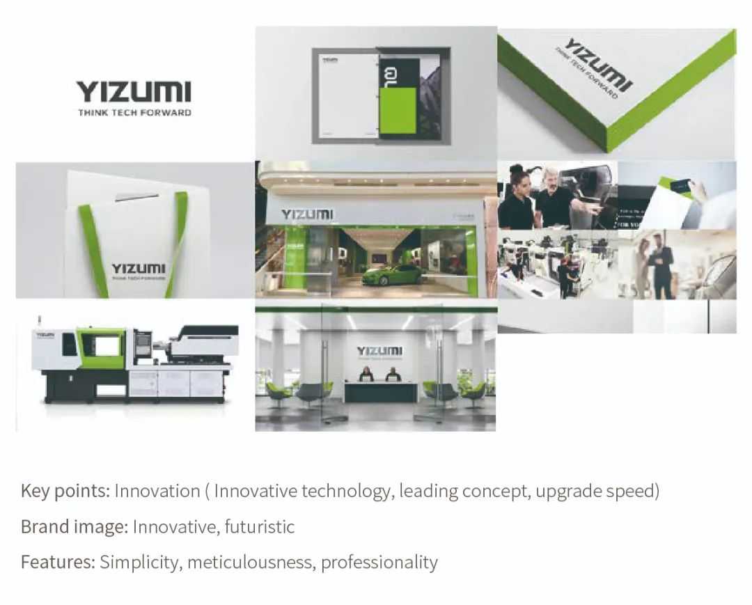 In 2022, after completing the brand upgrade, YIZUMI released a new corporate VI (Corporate Visual Identification System) to the public. It consists of standard colors of "Dark Grey, Green, and White". "Dark Grey" is the main color, while "Green" and "White" are sub color.