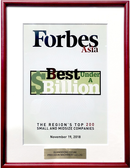 Yizumi Selected Among Asia’s 200 Best Under A Billion by Forbes