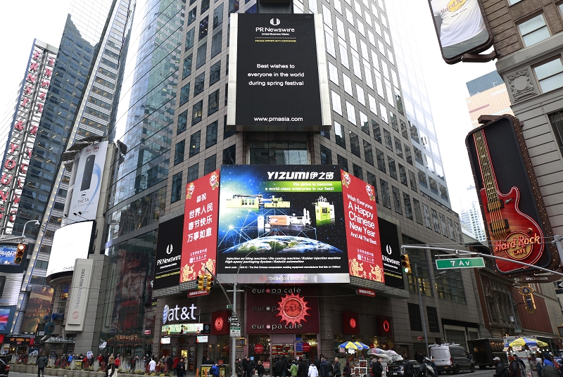 此次紐約時代廣場賀新春活動中,伊之密作為塑機行業(yè)唯一的企業(yè)代表,從2月7日至2月10日,連續(xù)4天與格力、蒙牛、TCL等100家國內(nèi)知名企業(yè)“同屏”,集體賀歲。