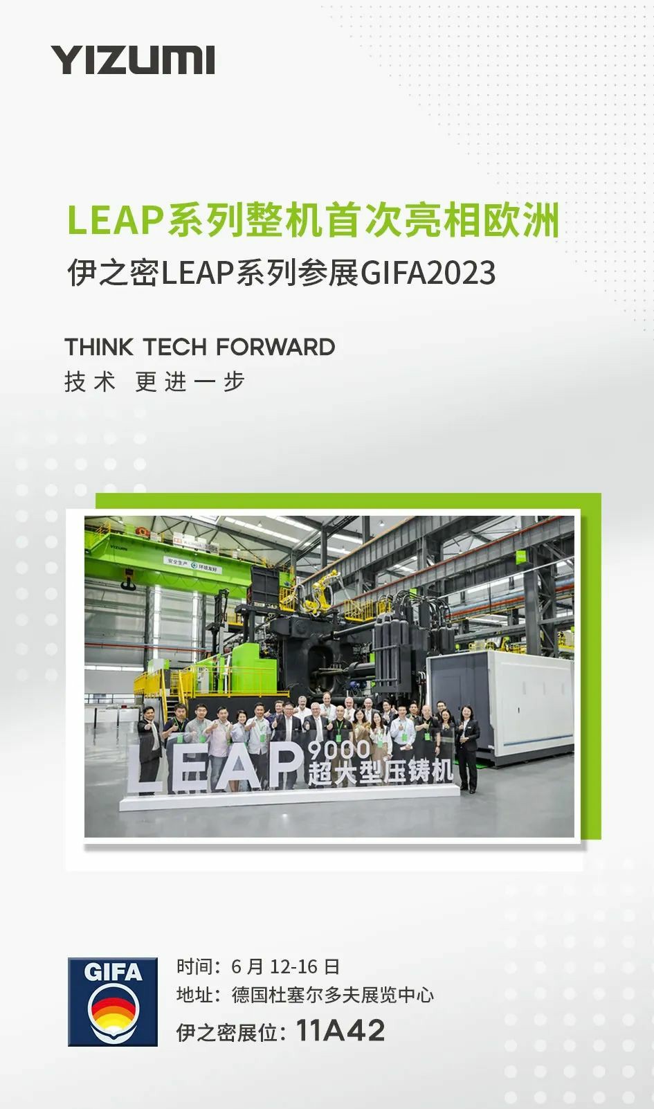 GIFA 2023將于6月12日至16日在德國杜塞爾多夫展覽中心舉行。伊之密以“技術(shù) 更進一步”為主題,現(xiàn)場展示多個智能壓鑄先進成型解決方案,其中LEAP系列壓鑄機將首次整機參展,亮相海外。