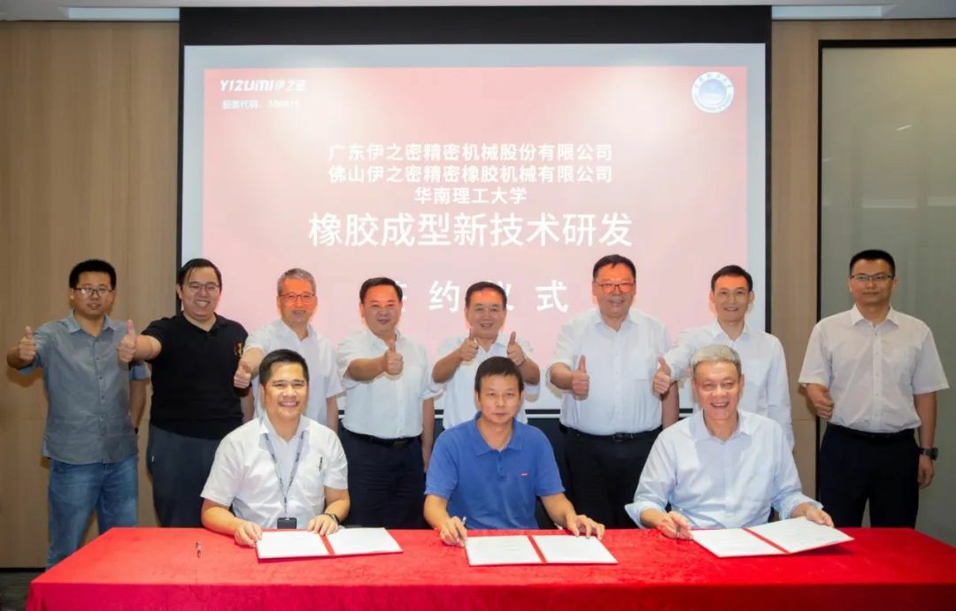 華南理工大學(xué)聚合物新型成型裝備國家工程研究中心常務(wù)副主任何和智教授、殷小春教授、伊之密董事副總經(jīng)理余焯焜先生、伊之密橡膠機(jī)事業(yè)部總經(jīng)理王詩海先生等領(lǐng)導(dǎo)出席簽約儀式。