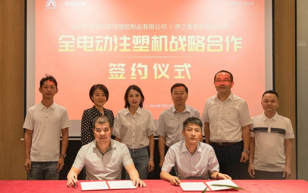 7月31日,汕頭市澄海區(qū)群隆塑膠制品有限公司(以下簡稱:群?。┡c伊之密股份有限公司簽訂全電動注塑機戰(zhàn)略合作簽約儀式。